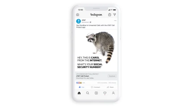 This social media campaign encouraged current customers to download a free app to guard their phone from spam, fraudulent callers and more. Humor works, so we embraced meme culture as a way to reach our target. This proved true, as the Raccoon tactic received 1.2M views and a Click Through Rate that exceeded the current benchmark by 4x. Shark got 1.9M views and its Video View Rate exceeded the benchmark by 61%. The Steaming campaign CTR exceeded benchmark by 21%, Engagement Rate exceeded benchmark by 36%, Video View Rate exceeded benchmark by 61%.